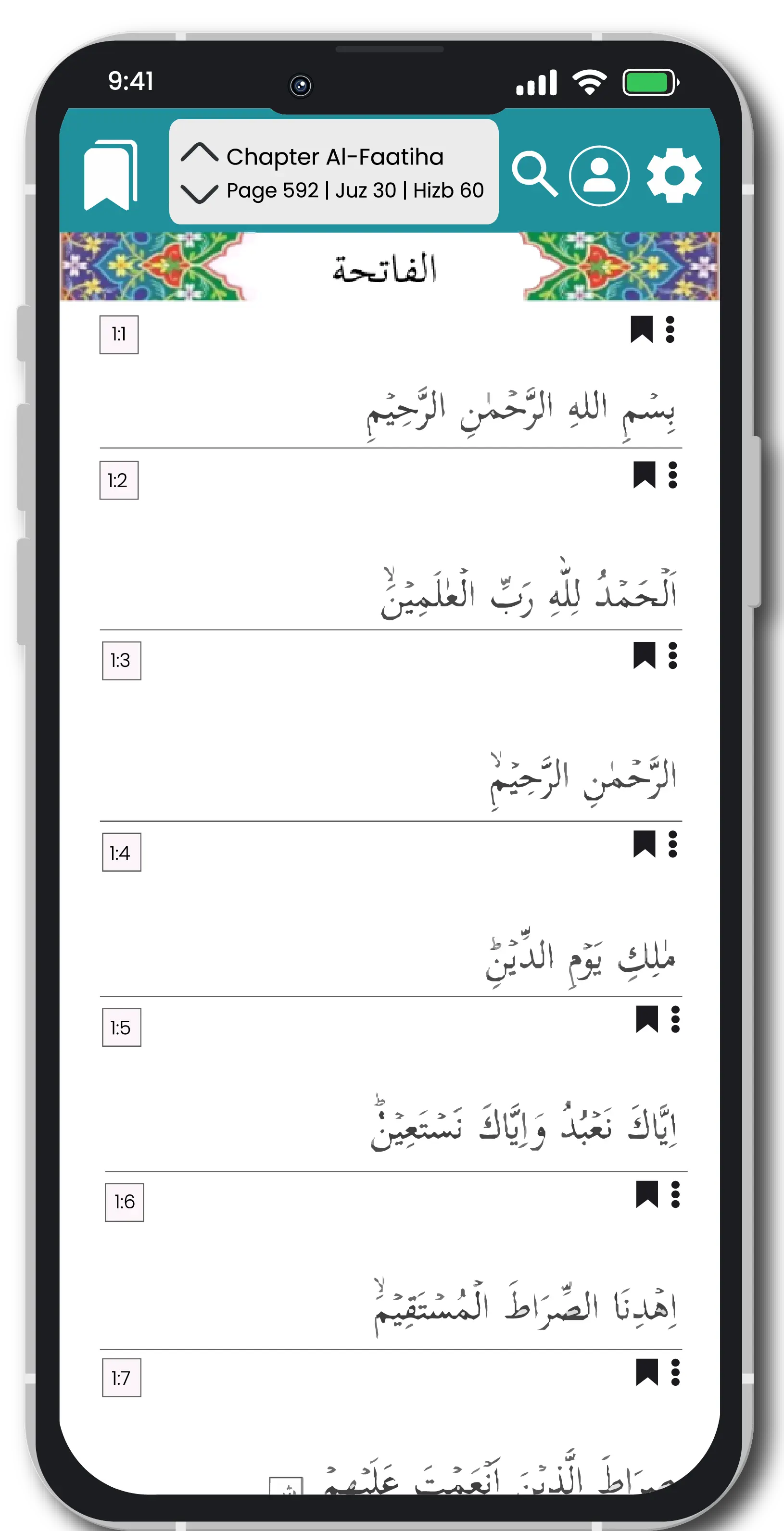 Add bookmarks, make notes, and personalize settings for a tailored Quran experience.